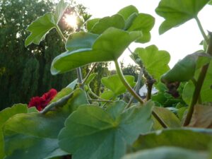 Dabei scheint so manches noch Schutz zu suchen, sich zu verstecken, wie diese ersten Blüten meiner Geranien.