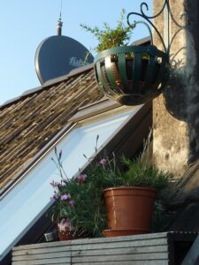 Allein der Bitterwurz und die Duftnelken (seltsam gegensätzliche Namen für zwei Blumen, die wunderbar zueinander passen) unter der noch etwas spärlich mit Jasmin und jungem Kriechthymian bestückten Hängeampel schwelgen schon in Farbe.
