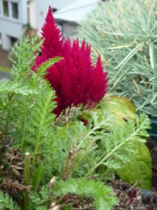 Heute war ein eher grauer Tag. So grau, dass  die Kamera das Dach statt den Bitterwurz in den Fokus setzt – und bei den Geranien das Blattgrün nebst Samenständen schärfer hervortritt als die letzten Blüten. Und doch – haben nicht auch Blüten und Minisolarzellen mit Regentropfen einen ganz eigenen Charme? Auf den Morning Glories (Prunkwinden) dagegen hat der Regen kleine Punkte hinterlassen – Regensprossen, sozusagen.  Und die Pinselblume, verborgen zwischen Schafgarben- und Nelkenüberresten, scheint bereits zu wissen: Allzu weit fort ist er nicht mehr, der Altweibersommer …