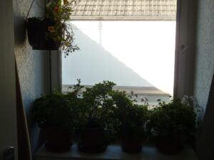 Deshalb ist Umzug für die empfindlicheren Pflanzen angesagt – Geranien, Bitterwurz und Jasmin haben ihr Winterquartier im Hausflur bezogen.