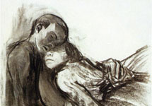 So dunkel wirken sie oft, die Grafiken und Drucke, aber auch Plastiken von Käthe Kollwitz. Manchmal scheint sie regelrecht von Tod und Leid besessen. Daneben wirken etwa Sabine Lepsius‘ Porträts von Großbürgern und vor allem höheren Töchtern geradezu frivol, wie Lesse Urys Cafészenen