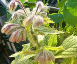 verschiedene Farben. Der Borretsch dagegen wartet noch auf den richtigen Moment, den die Kapuzinerkresse unter seinen Blättern bereits fand.