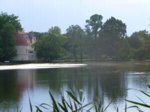 So schön war der Sommer – zumindest vor ein paar Wochen, als wir bei Dresden Urlaub machten. Dort auf dem Land fanden wir auch dieses verwunschene Schloss samt Teich und Park. Ein reiner „Zufallsfund“ – wir folgten dem Schild „Schlosspark“, das wir neben dem Parkplatz eines Restaurants sahen, wo wir zu Abend gegessen hatten. Besonders schön: Hier war alles gratis. Bloß das Schloss war nicht zu besichtigen, weil nur an wenigen Tagen im Monat für gewisse Veranstaltungen geöffnet. Schade, aber nicht zu ändern, wo Urlaub nun mal so oder so eine kurze, nur allzuschnell verflogene Zeitspanne ist.