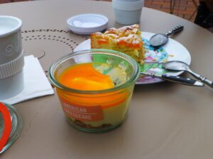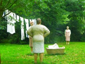 So perfekt passen die „Alltagsmenschen“, wie die Künstlerin Christel Lechner ihre Betonskulpturen in der Flora nennt, in die Botanik und zwischen die Besucher. Ob allerdings deren Korpulenz im Zusammenhang mit der neuen Gastronomie steht, bleibt einstweilen noch ein Geheimnis … lecker sind die Salate, Suppen, Kuchen, etc. im Glas jedenfalls allemal! 🙂