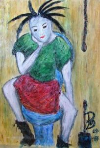 P.S.: Der Vollständigkeit halber sei erwähnt, dass der Pissende Punker aus Kohle & Pigment in Acrlybasis besteht und der Tonkarton, auf den er gemalt ist, 50 x 70 cm misst. Gegebenenfalls wäre er auch in gute Hände abzugeben … Die Pissende Punkerin