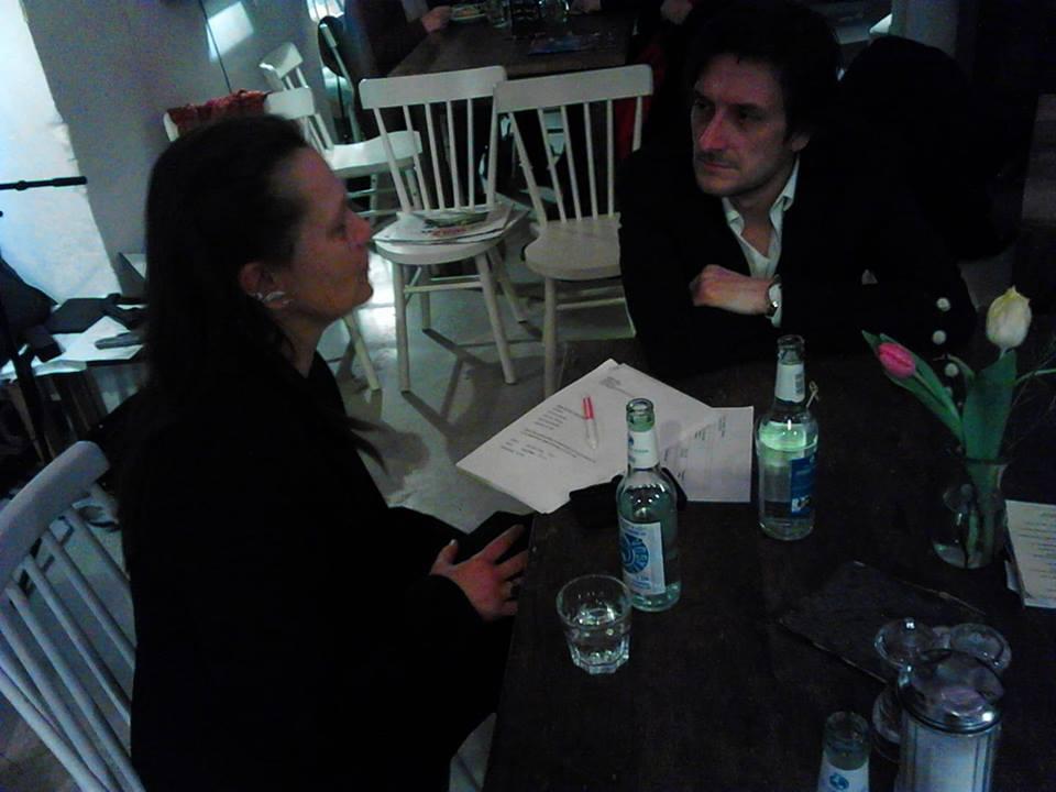 Okay, das Livres war bereits voll, bevor wir zum Soundcheck kamen – kein Wunder bei den leckeren Torten, der köstlichen Getränkevielfalt und allem anderen Kreativen auf der Karte. Aber ab 18 Uhr galt dann „Zutritt nur noch für Lesungsgäste“ – die in der Stunde bis zum Lesungsbeginn auch erstmal für ihr leibliches Wohl sorgten. Was auch Sinn macht, überfallen werden auf nüchternen Magen ist bestimmt nicht gesund und auch Lachen klingt bestimmt besser, wenn’s nicht gegen’s Magenknurren antreten muss.
