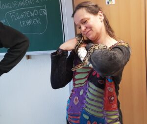 Autoren seien Schreibtischtäter, heißt es gelegentlich, und das stimmt oft auch. Aber wer schreiben will, muss etwas erlebt haben bzw. erleben. Und wenn man mit Kindern arbeitet, kann es sehr viel Sinn machen, Schreibanlässe zu schaffen. Anfang des Monats in der Christiane-Herzog-Schule hatten wir tierischen Besuch von diversen Tieren