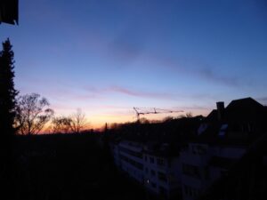 … zeigt der Abendhimmel draußen vor meinem Arbeitszimmer heute, etwas aufgehellt von der Kamera. Das passt irgendwie zu meinem heutigen Tag im Home Office –