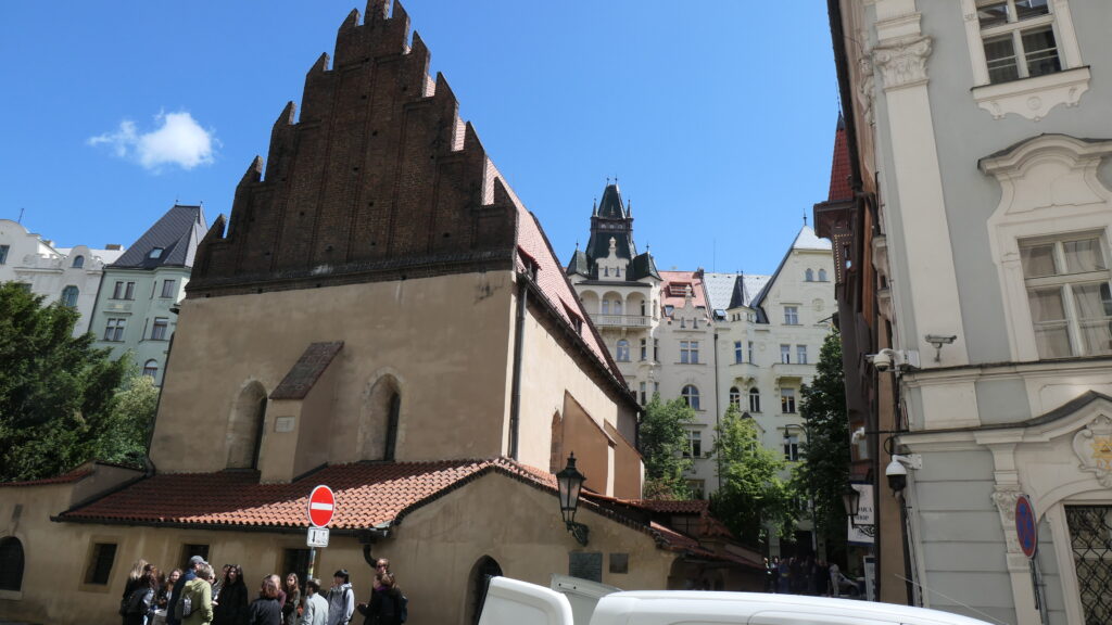 Geschichte und heutiges Leben, Touristenströme und Spiritualität, all das kommt mir auch in den Sinn, wenn ich an den anschließenden Besuch der Altneusynagoge denke. In der frühgotischen Staronová Synagoga, der ältesten, unzerstörten ihrer Art in Europa, werden bis heute Gottesdienste abgehalten. Auf eine gewisse Weise fühlte sie sich für mich wie ein ‚Bruderort‘ zur Georgsbasilika in der Burg an – ein äußerlich schlichtes Gebäude, in dem man die Gebete und Gesänge, all die Menschen, die hier ihren Glauben lebten und leben, zu spüren meint. Und meine Kinderseele, die schon immer die Geschichten über den Golem geliebt hat, wäre nur zu gern nachschauen gegangen, ob oben auf dem Dachboden der Synagoge wirklich seine Überreste liegen (aber immerhin waren wir später im Café Golem, um köstlichen Kuchen zu verspeisen :)).